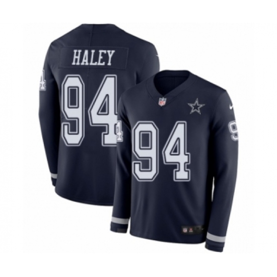 >Youth Nike Dallas Cowboys #94 Charles Haley Limited Navy Blue Therma Long Sleeve NFL Jersey