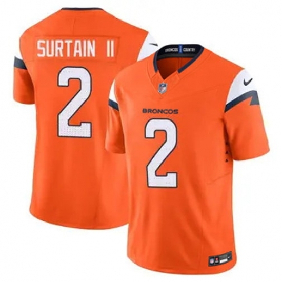 Men's Denver Broncos #2 Patrick Surtain II Orange White 2024 F.U.S.E. V2 Throwback Vapor Limited Alternate Stitched Jersey