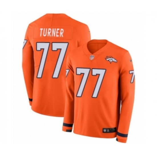 >Youth Nike Denver Broncos #77 Billy Turner Limited Orange Therma Long Sleeve NFL Jersey