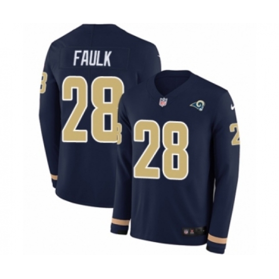 Youth Nike Los Angeles Rams #28 Marshall Faulk Limited Navy Blue Therma Long Sleeve NFL Jersey