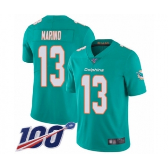 Youth Nike Miami Dolphins #13 Dan Marino Aqua Green Team Color Vapor Untouchable Limited Player 100th Season NFL Jersey