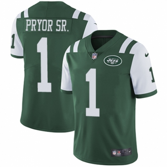 >Youth Nike New York Jets #1 Terrelle Pryor Sr. Green Team Color Vapor Untouchable Limited Player NFL Jersey