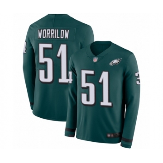 >Youth Philadelphia Eagles #51 Paul Worrilow Limited Green Therma Long Sleeve Football Jersey
