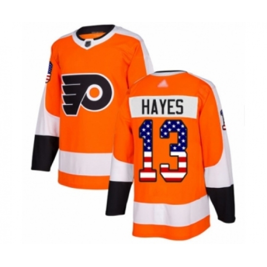 Men's Philadelphia Flyers #13 Kevin Hayes Authentic Orange USA Flag Fashion Hockey Jersey
