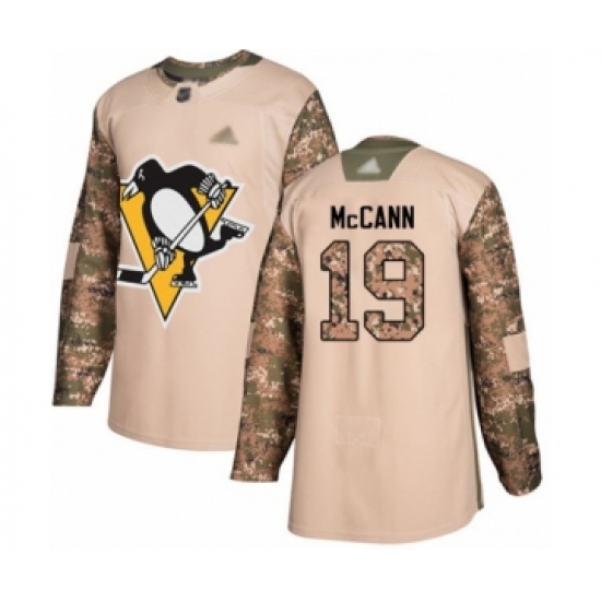 >Youth Pittsburgh Penguins #19 Jared McCann Authentic Camo Veterans Day Practice Hockey Jersey