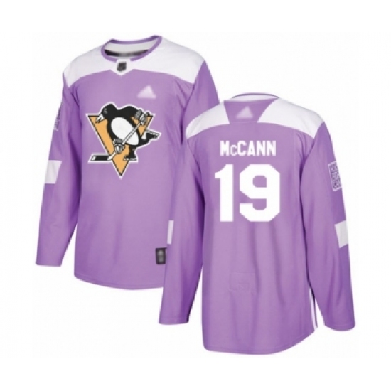 >Youth Pittsburgh Penguins #19 Jared McCann Authentic Purple Fights Cancer Practice Hockey Jersey