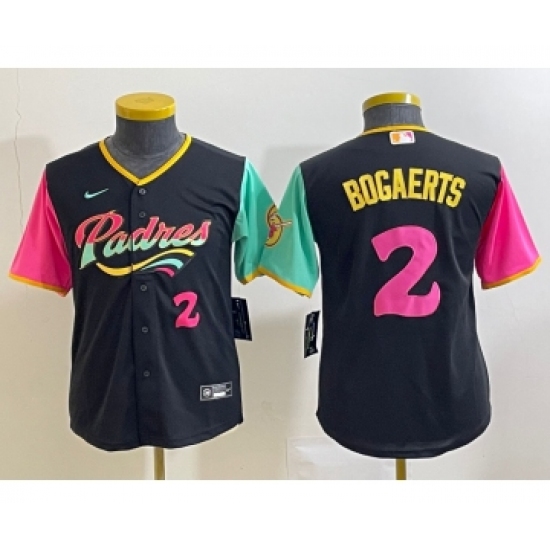 Youth San Diego Padres #2 Xander Bogaerts Black NEW 2023 City Connect Cool Base Stitched Jersey