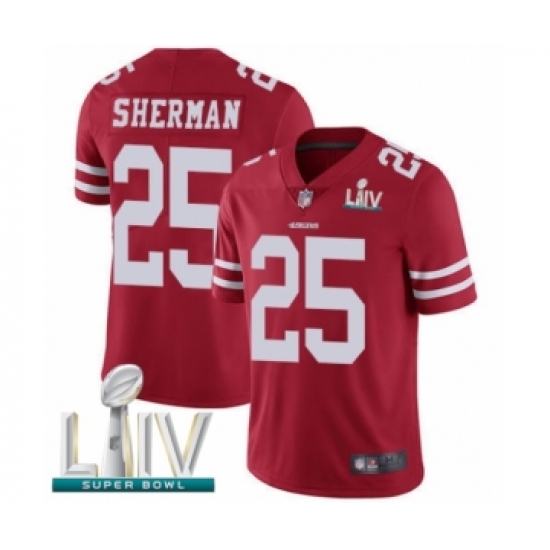 >Youth San Francisco 49ers #25 Richard Sherman Red Team Color Vapor Untouchable Limited Player Super Bowl LIV Bound Football Jersey