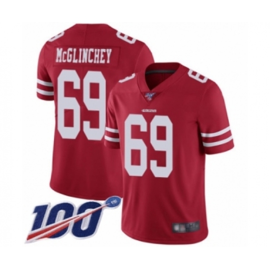 Men's San Francisco 49ers #69 Mike McGlinchey Red Team Color Vapor Untouchable Limited Player 100th Season Football Jersey