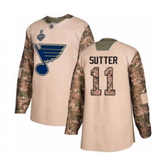 Men's St. Louis Blues #11 Brian Sutter Authentic Camo Veterans Day Practice 2019 Stanley Cup Final Bound Hockey Jersey