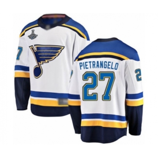 >Youth St. Louis Blues #27 Alex Pietrangelo Fanatics Branded White Away Breakaway 2019 Stanley Cup Champions Hockey Jersey