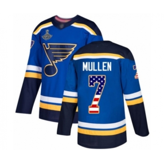 Men's St. Louis Blues #7 Joe Mullen Authentic Blue USA Flag Fashion 2019 Stanley Cup Champions Hockey Jersey