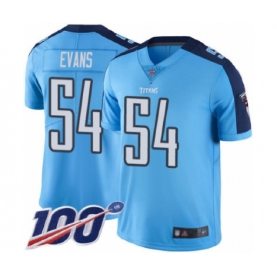 >Youth Tennessee Titans #54 Rashaan Evans Limited Light Blue Rush Vapor Untouchable 100th Season Football Jersey