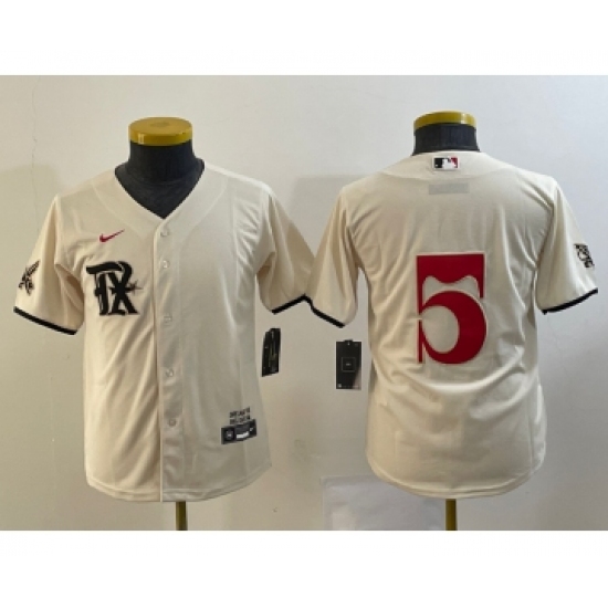 >Youth Texas Rangers #5 Corey Seager Cream 2023 City Connect Cool Base Stitched Jersey
