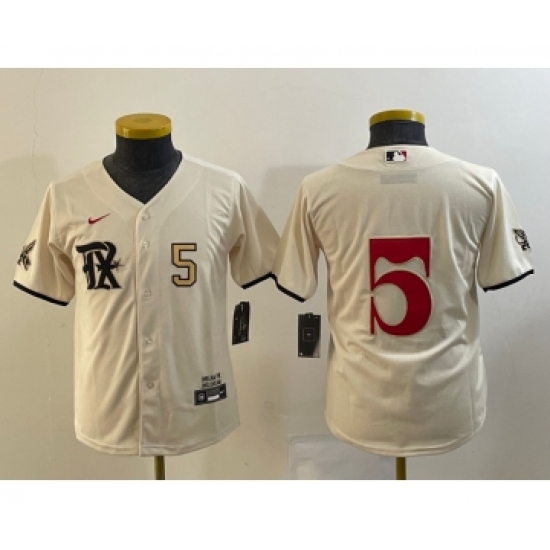 >Youth Texas Rangers #5 Corey Seager Number Cream 2023 City Connect Cool Base Stitched Jersey