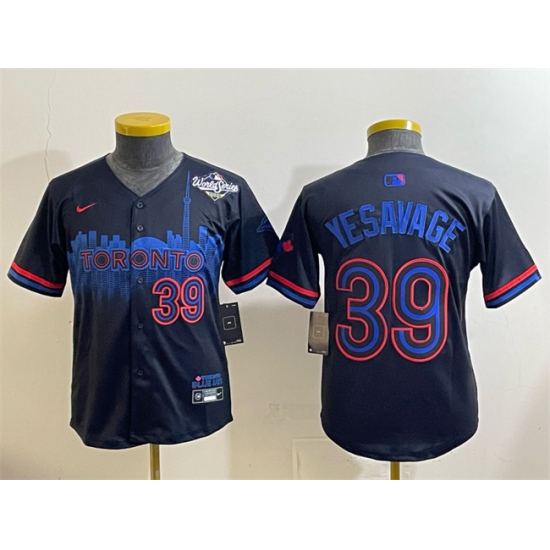 >Youth Toronto Blue Jays #39 Trey Yesavage Navy 2025 World Series City Connect Limited Stitched Baseball Jersey