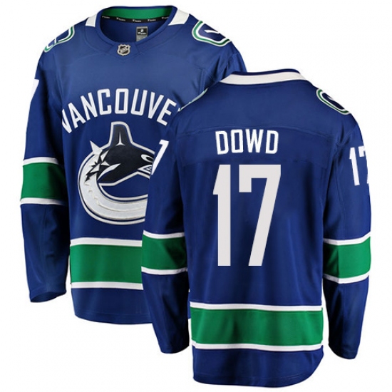 >Youth Vancouver Canucks #17 Nic Dowd Fanatics Branded Blue Home Breakaway NHL Jersey