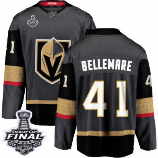>Youth Vegas Golden Knights #41 Pierre-Edouard Bellemare Authentic Black Home Fanatics Branded Breakaway 2018 Stanley Cup Final NHL Jersey
