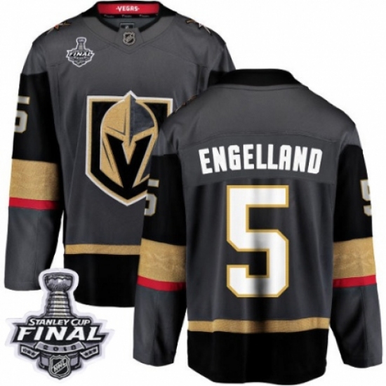 >Youth Vegas Golden Knights #5 Deryk Engelland Authentic Black Home Fanatics Branded Breakaway 2018 Stanley Cup Final NHL Jersey