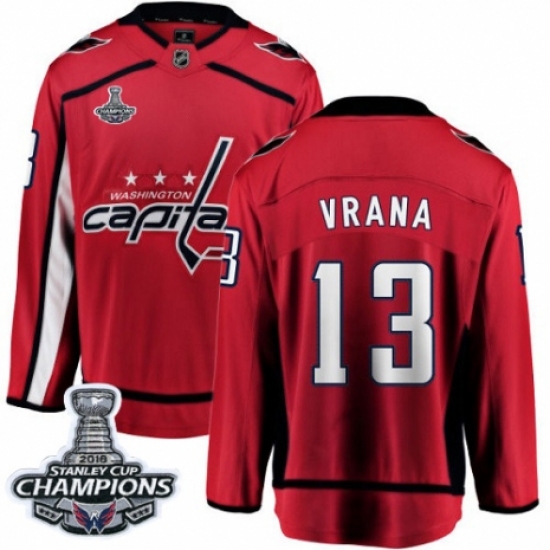 Youth Washington Capitals #13 Jakub Vrana Fanatics Branded Red Home Breakaway 2018 Stanley Cup Final Champions NHL Jersey