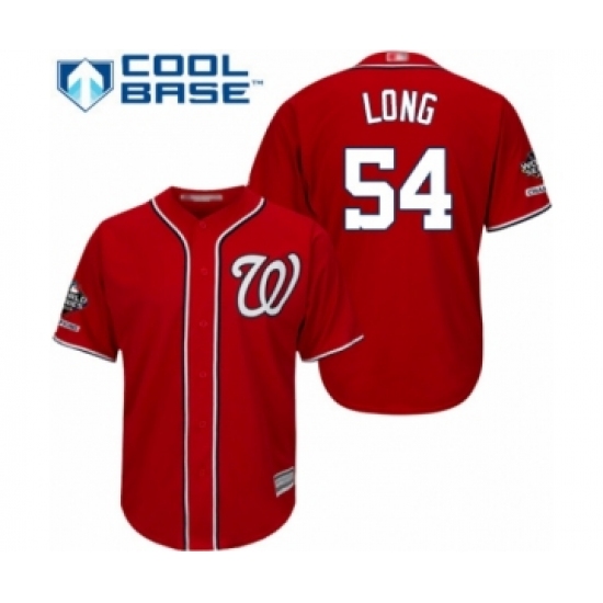 >Youth Washington Nationals #54 Kevin Long Authentic Red Alternate 1 Cool Base 2019 World Series Champions Baseball Jersey