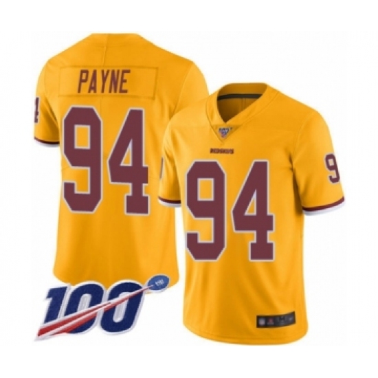 Youth Washington Redskins #94 Da'Ron Payne Limited Gold Rush Vapor Untouchable 100th Season Football Jersey